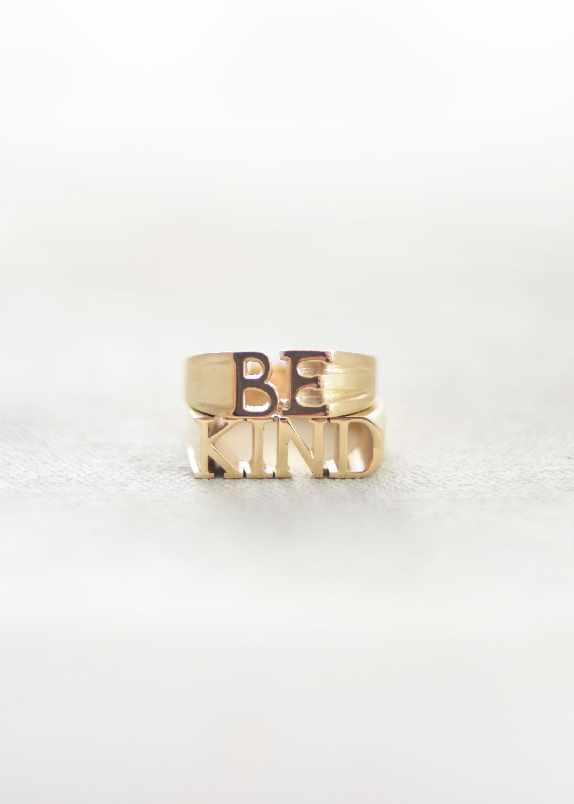 The Kind Ring is perfect on its own or mixed with one of our other saying rings. This ring is available in Sterling Silver, 14 Karat Gold, 14 Karat White Gold and 14 Karat Rose Gold.